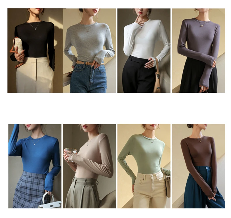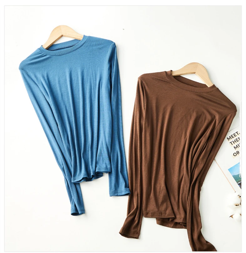 2025 New Modal Women's T-Shirt Crew Neck Versatile Brand Bottom Shirt Long Sleeve Woman Inner T Shirt Women Tops Tees For Female