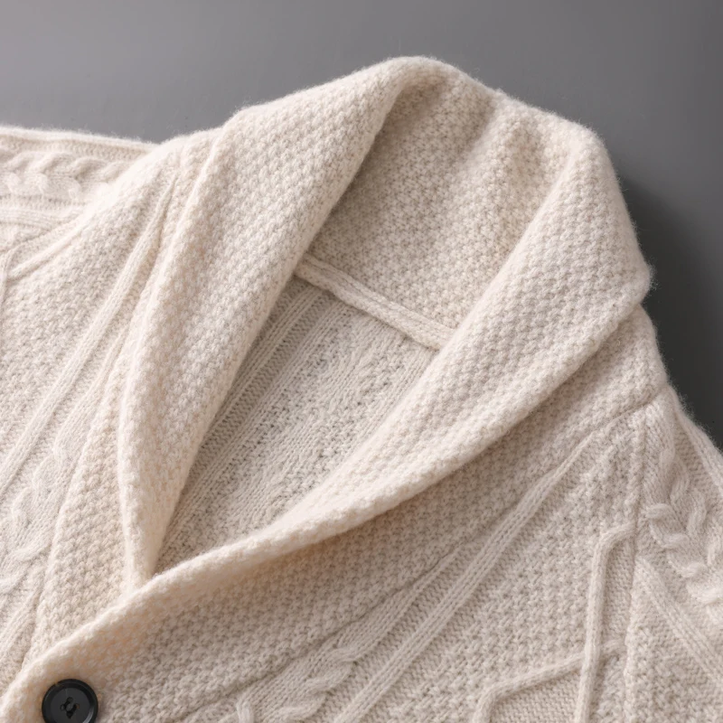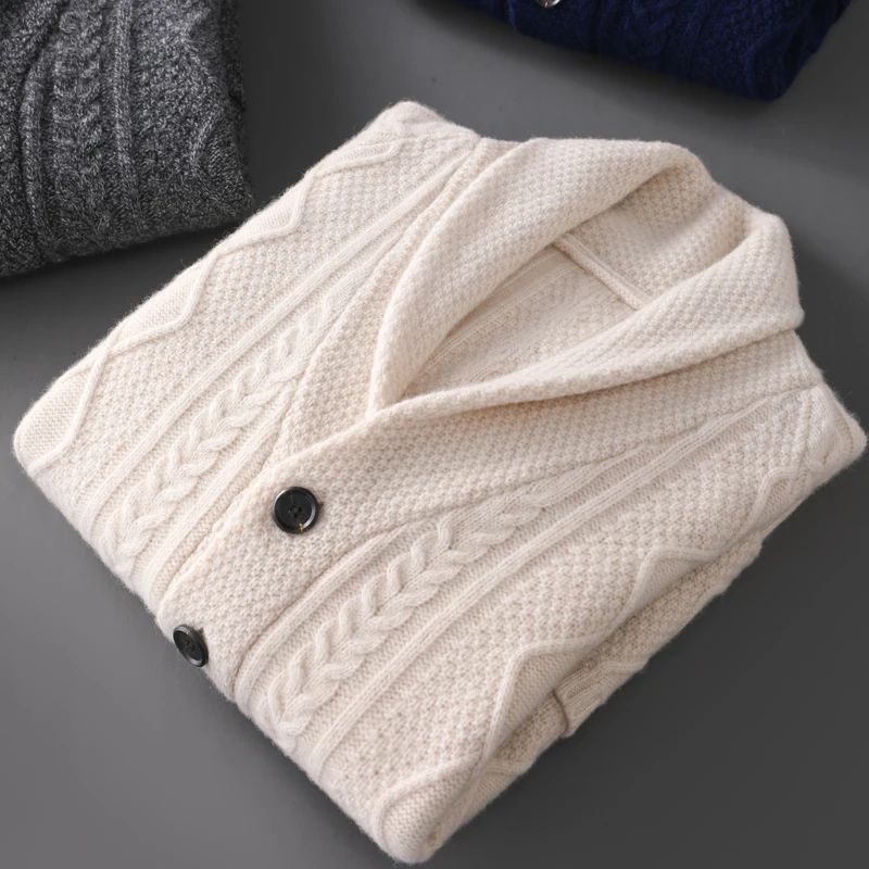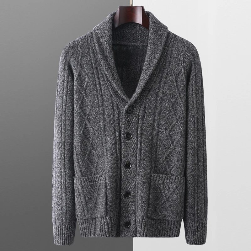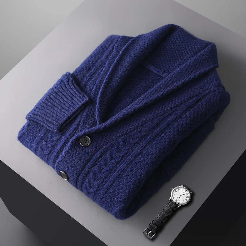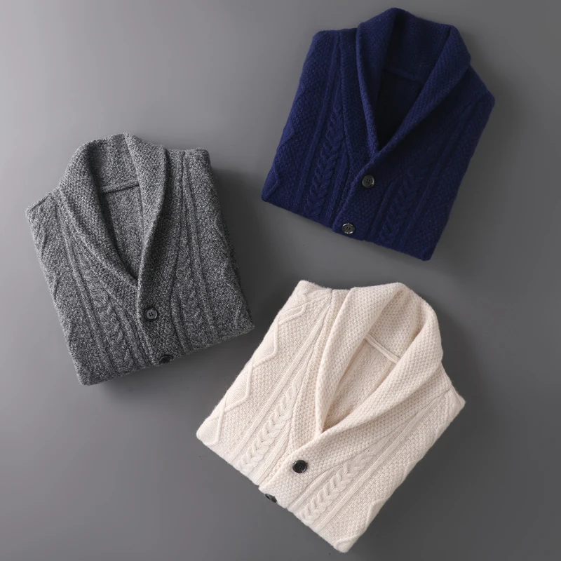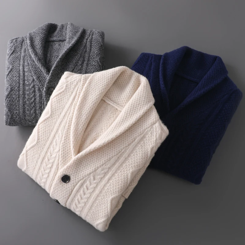 Autumn Winter Men 100% Merino Wool knitted Cashmere Sweater Thick Jacquard Coat Turn-Down Collar Cardigan Smart Casual Chic Tops