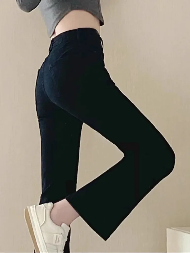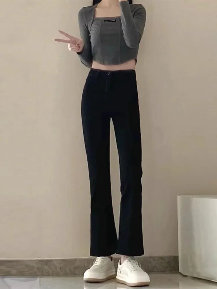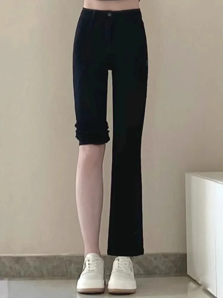 Bla Flared Jeans Women's Summer Large Size Slim High Waist Straight Leg Elastic Floor-Length Pants Elastic Waisand Zipper...