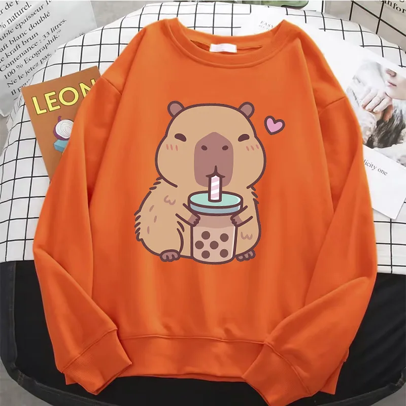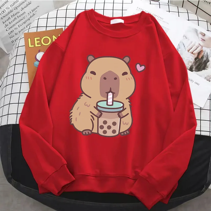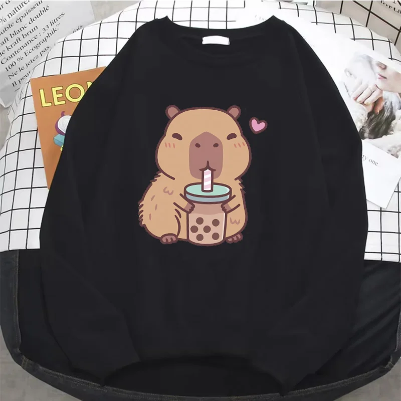 Crew Neck Capybara Hoodie O-Neck Fashion Women Cartoon Harajuku Aesthetic Graphic Hoodies Vintage Pullovers Sweatshirts