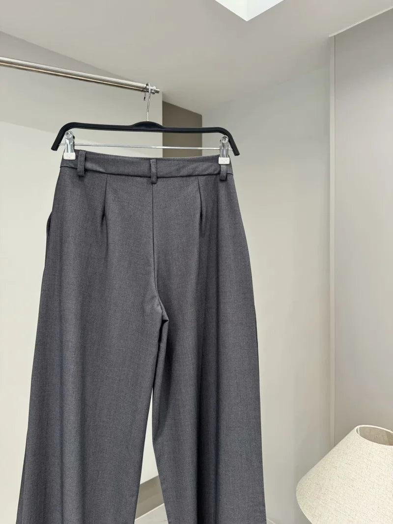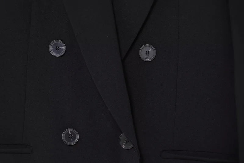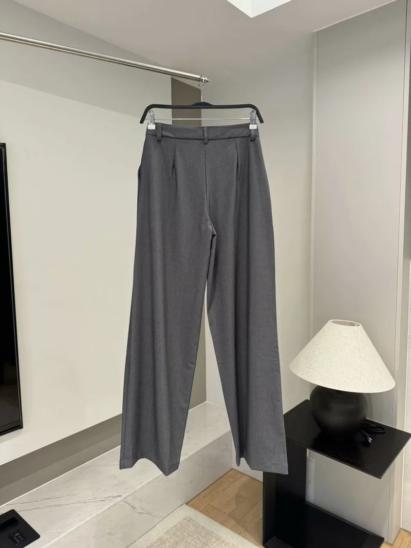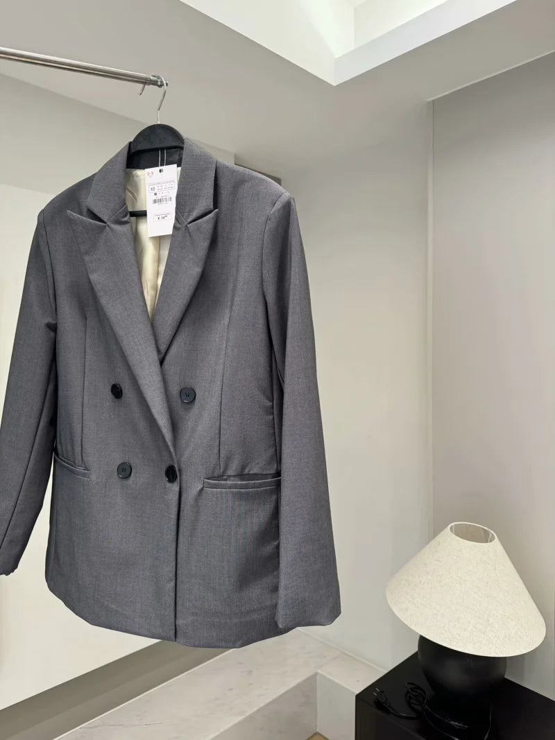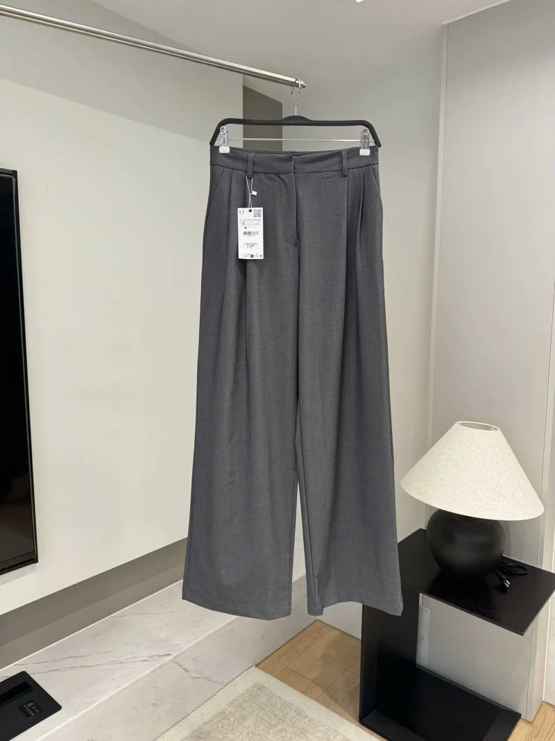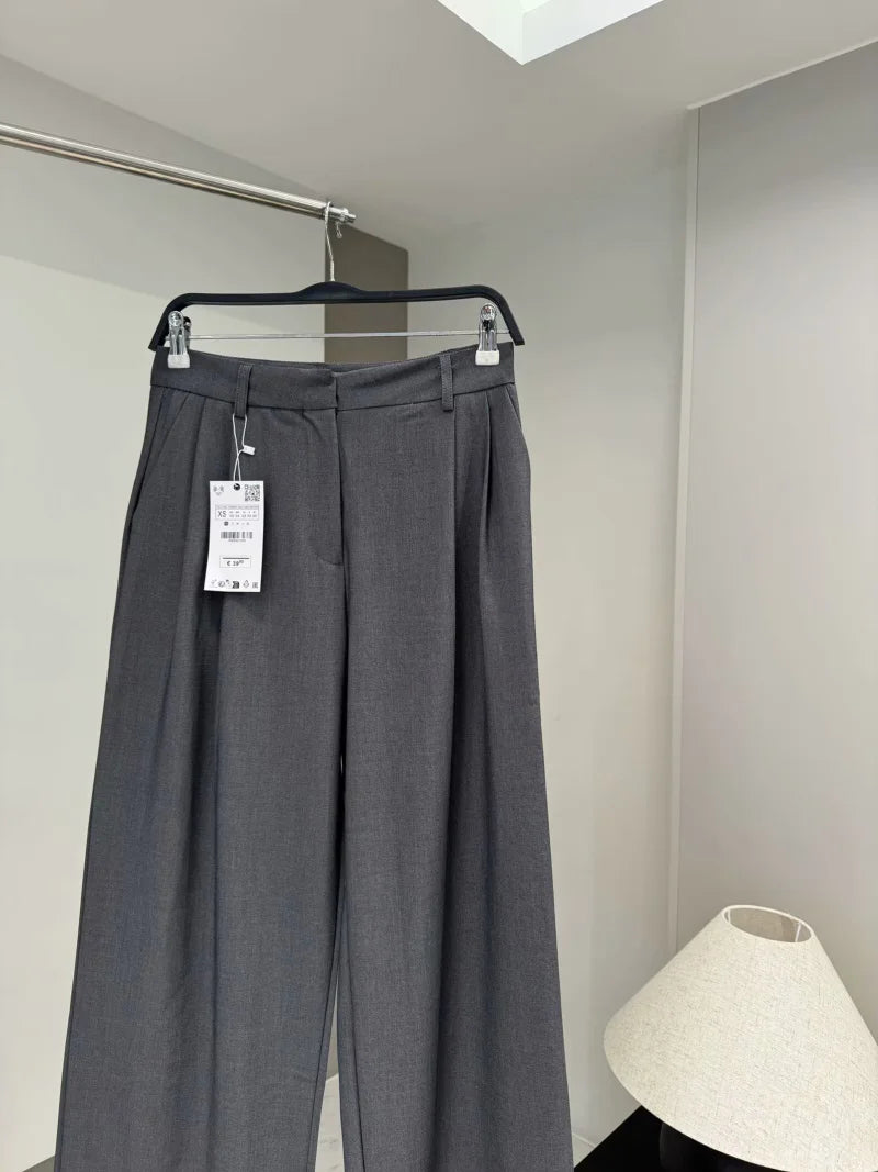 ETJ 2025 TRAF Women's Spring New suit Set with shoulder padded double-breasted blazer & high-waisted pleated wide-legged pants