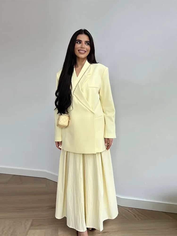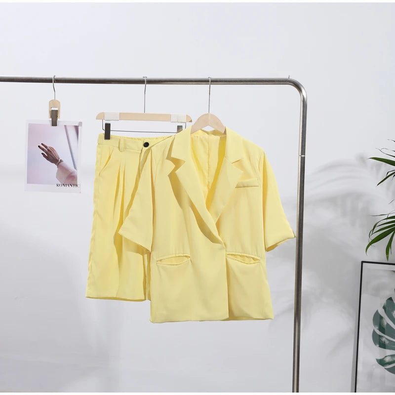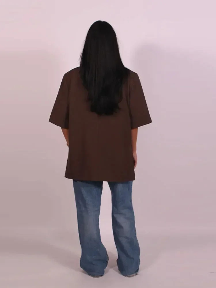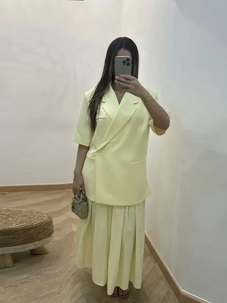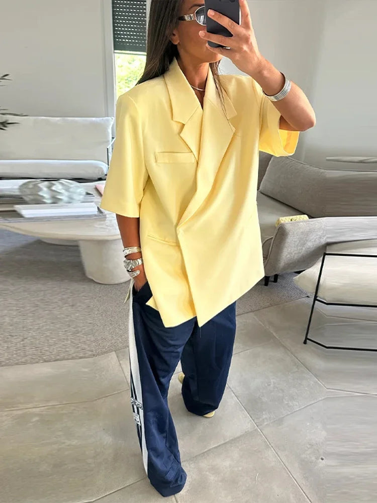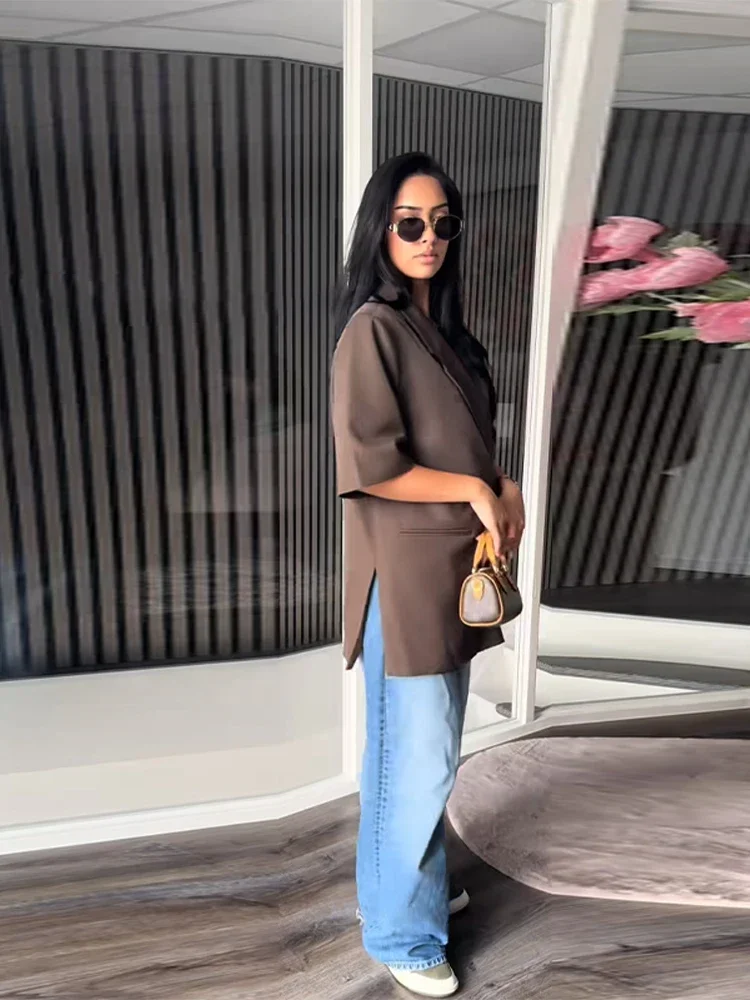 Fashion Lapel Suit Jacket Women Casual Loose Short Sleeve Office Lady Coat 2025 New Chic Autumn Single Button Oversize Jacket