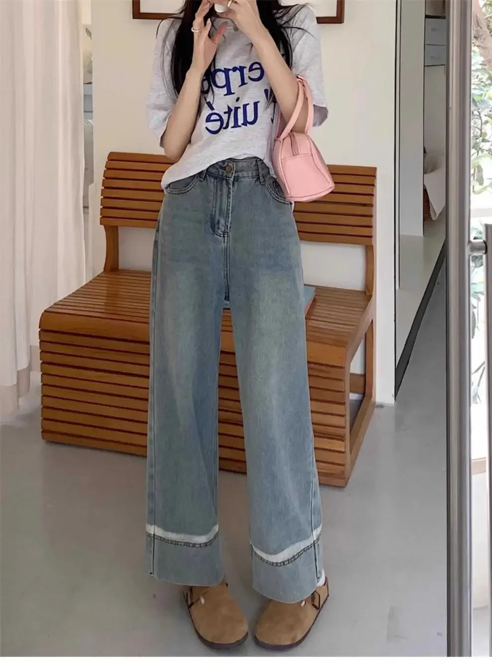 • Cropped Wide Leg Style : The cropped wide leg style adds a modern twist to classic denim, perfect for spring fashion.
