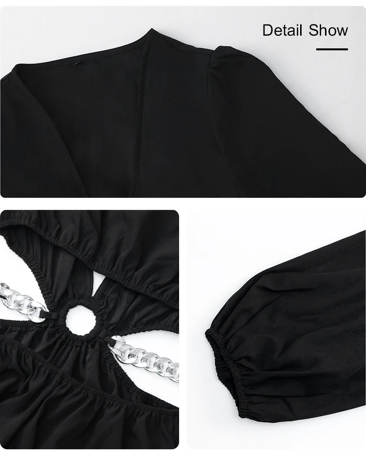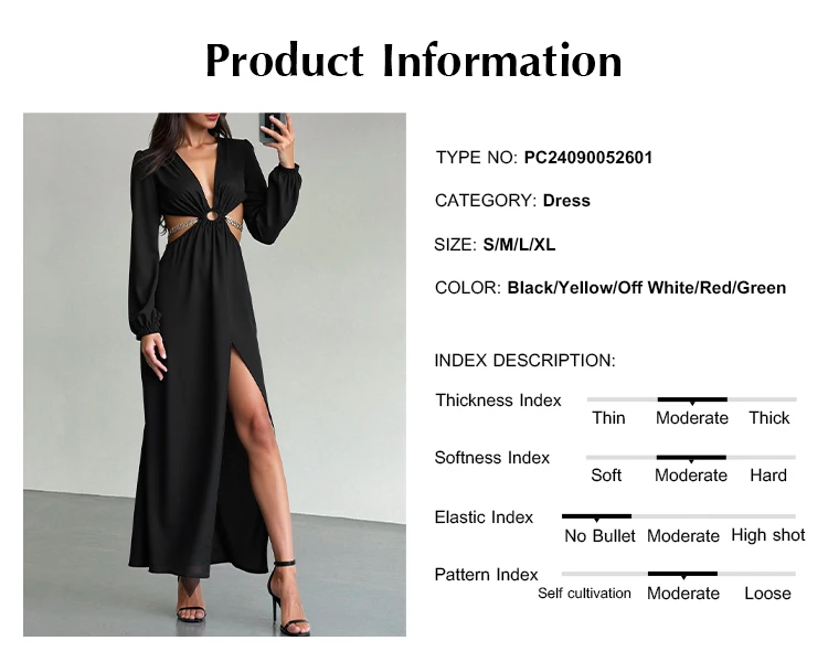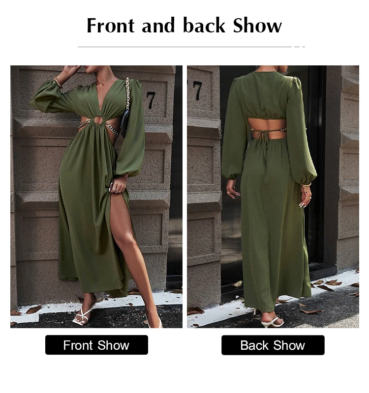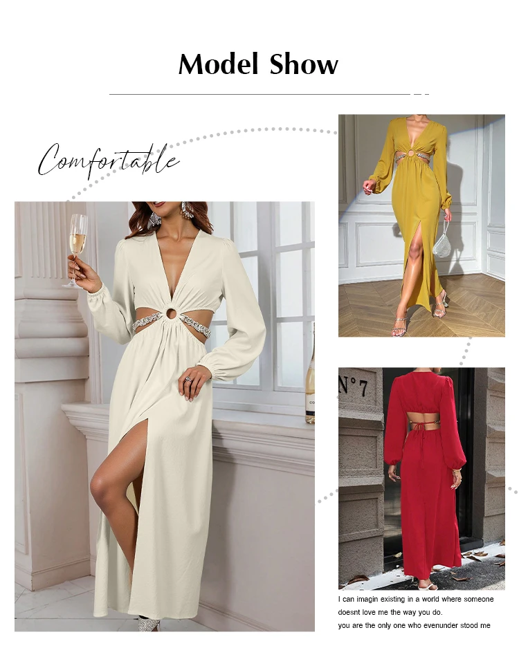 Mia Muse Women's Dresses Autumn Sexy Loin Hollowing Long Sleeve V-Neck A-Line Maxi Party Dresses