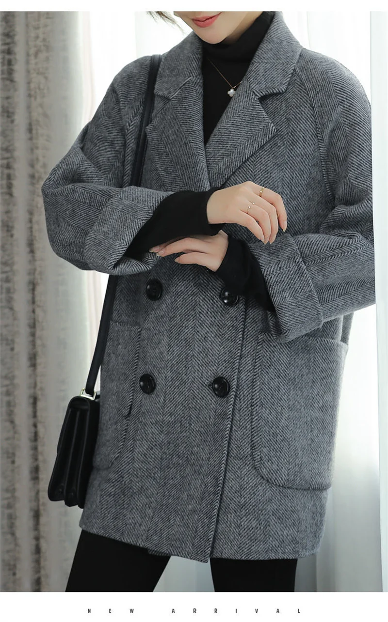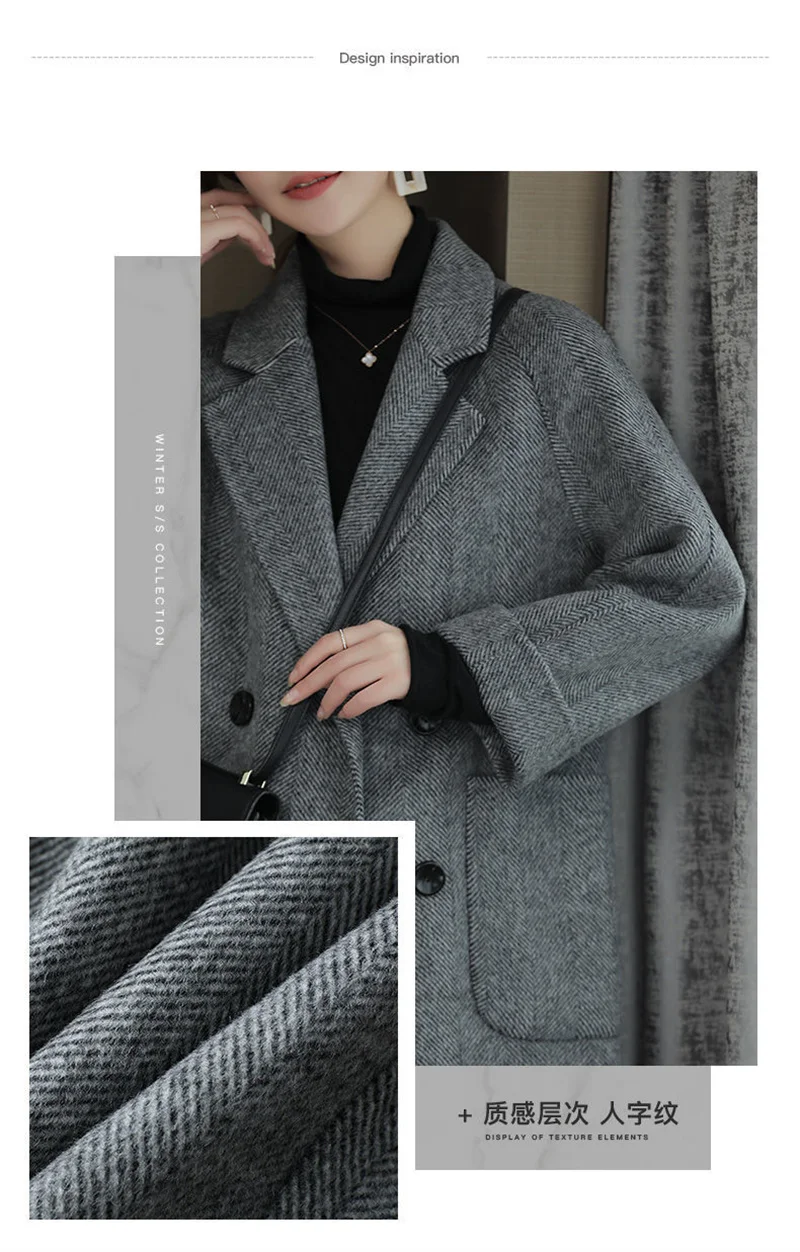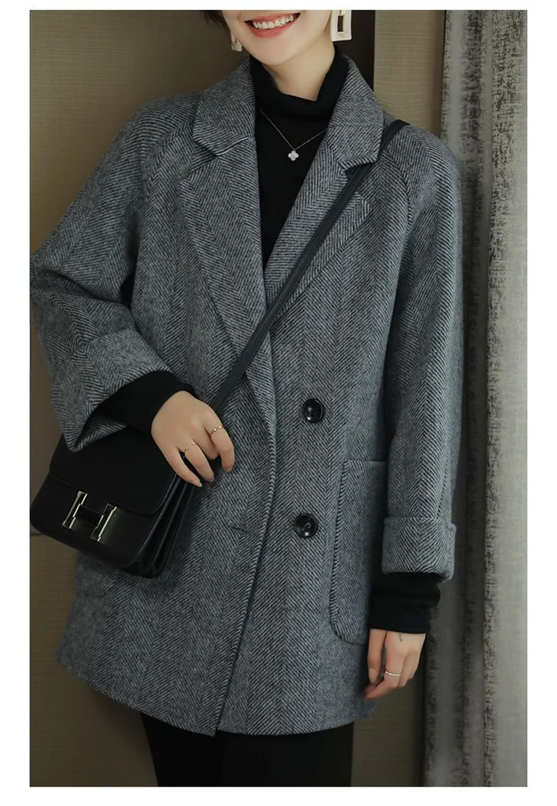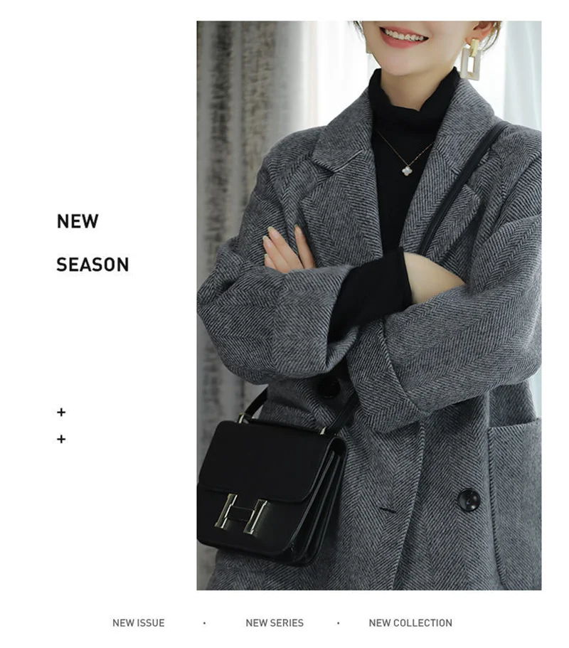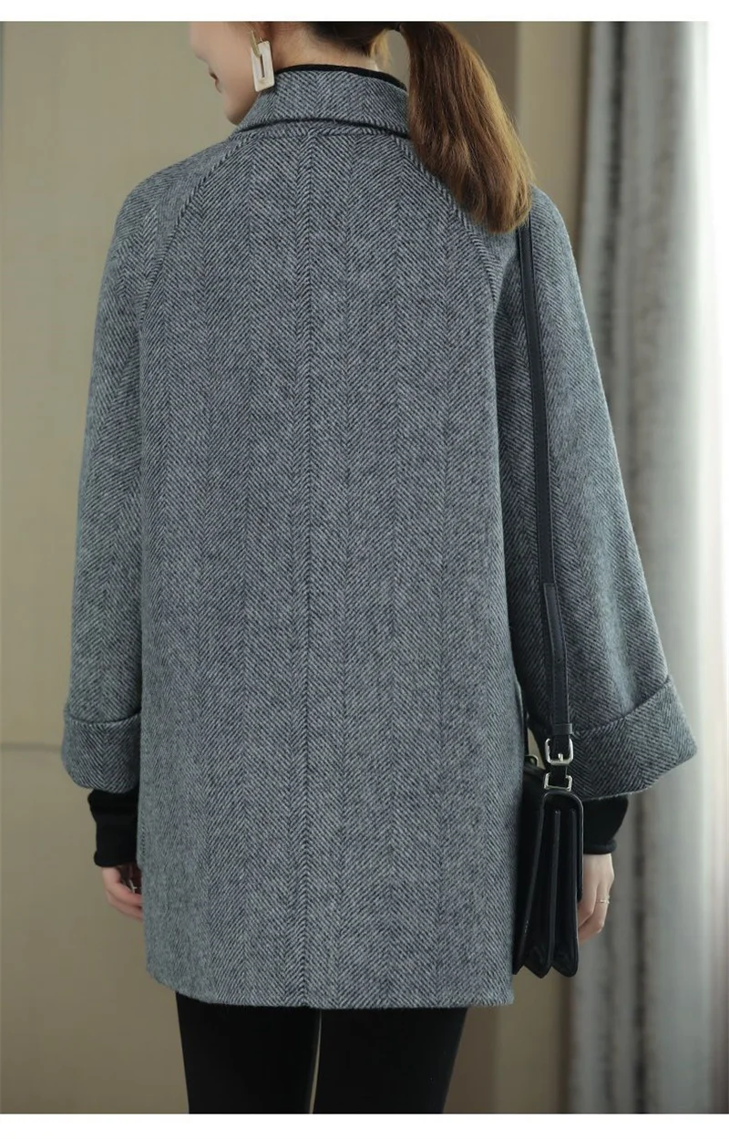New Elegant Women Mid-length Woolen Coats Office Lady Autumn Winter Korean Loose Warm Thick Wool Blend Jackets Female Outerwear