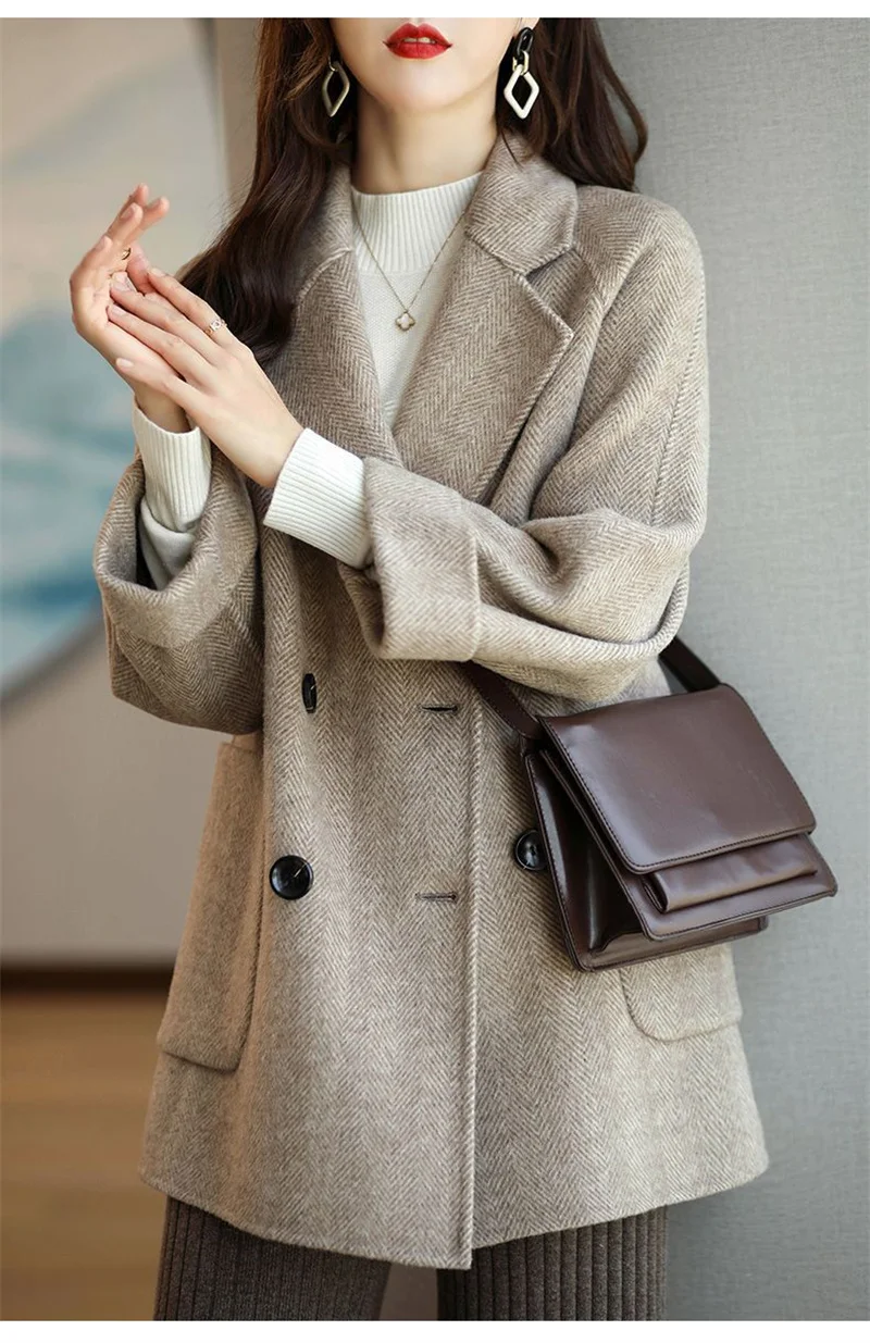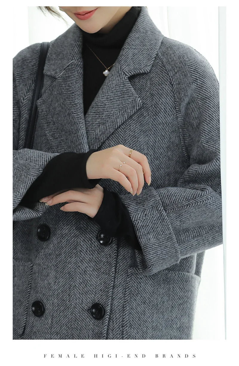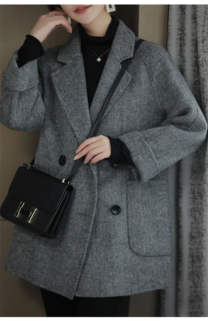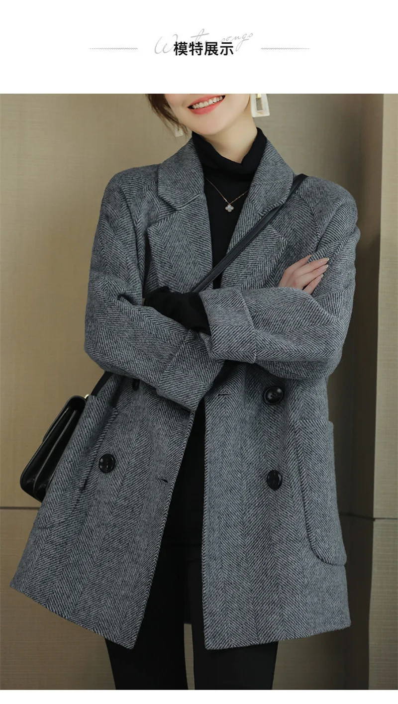 New Elegant Women Mid-length Woolen Coats Office Lady Autumn Winter Korean Loose Warm Thick Wool Blend Jackets Female Outerwear
