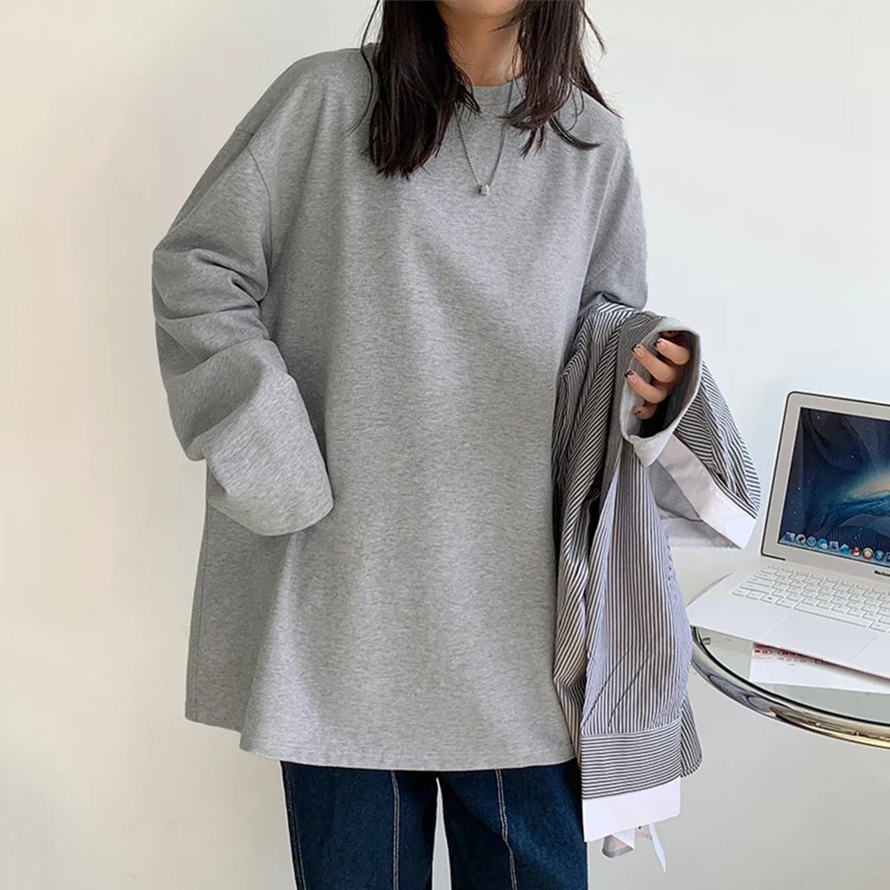 New Trendy Cotton Long Sleeve T-Shirt Women Oversize Basic Tee Casual O-neck Tops Simple Streetwear Cozy Versatile T-shirt