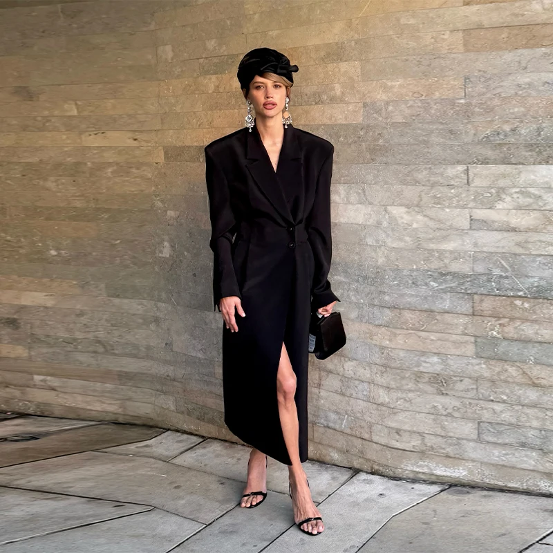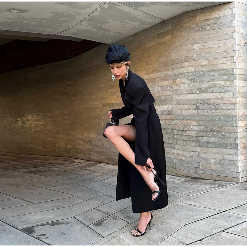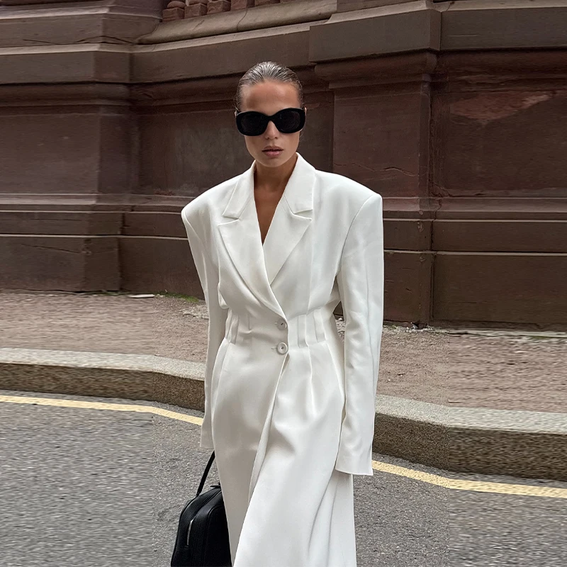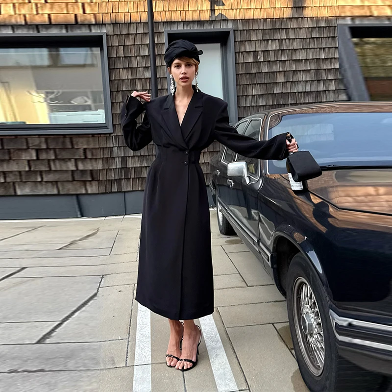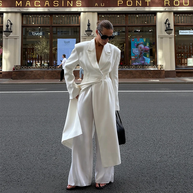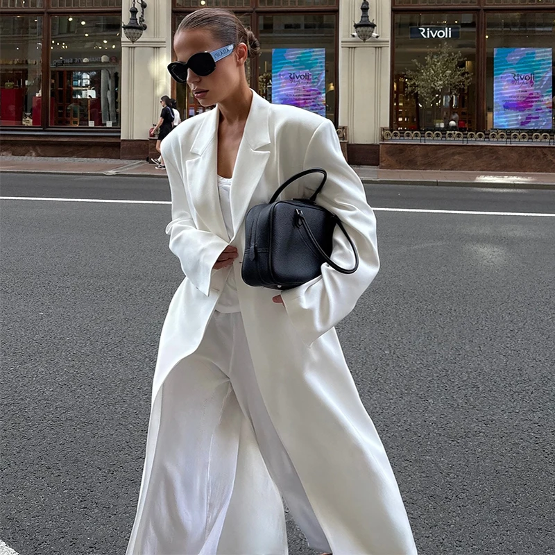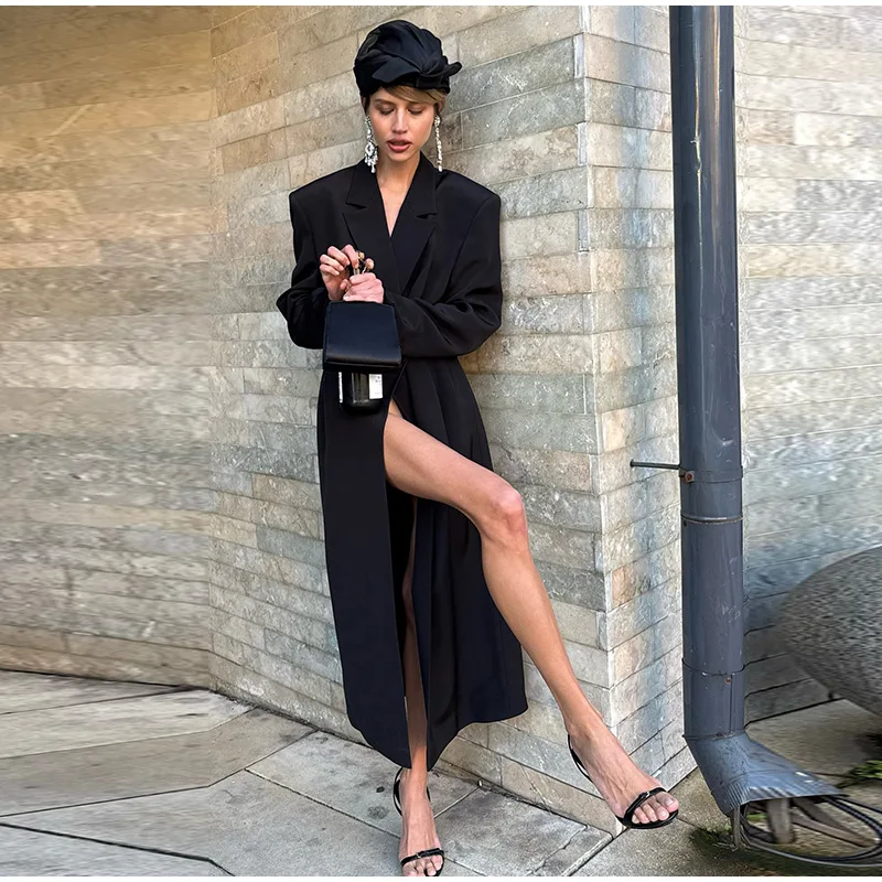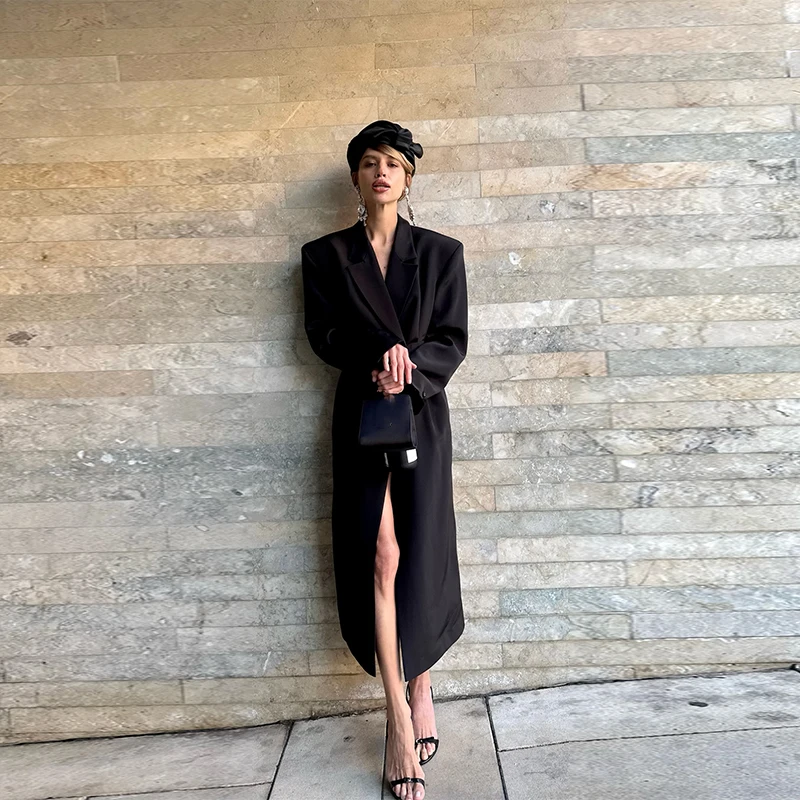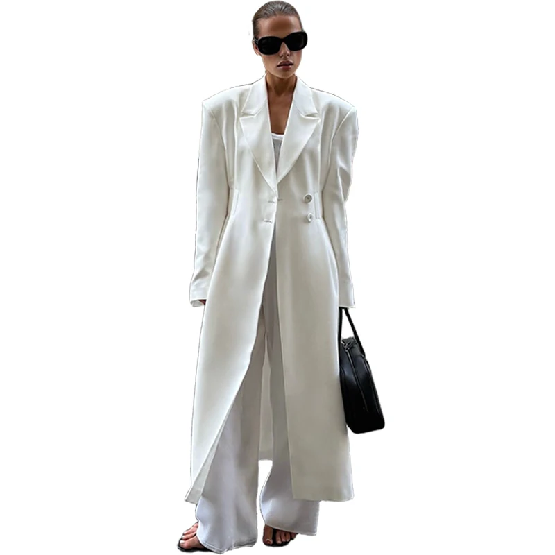 Street Fur Long Women's Jacket Long Sleeve Shoulder Pad Lapel Femal Coat 2025 Autumn Fashion Solid Double Buckle Lady Outwears