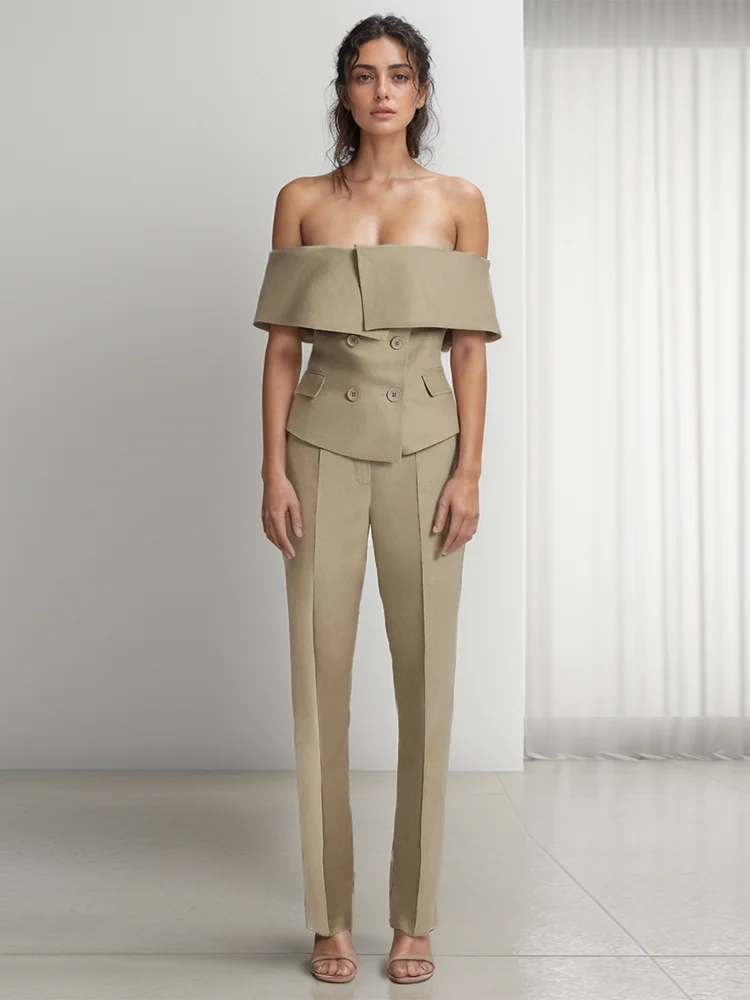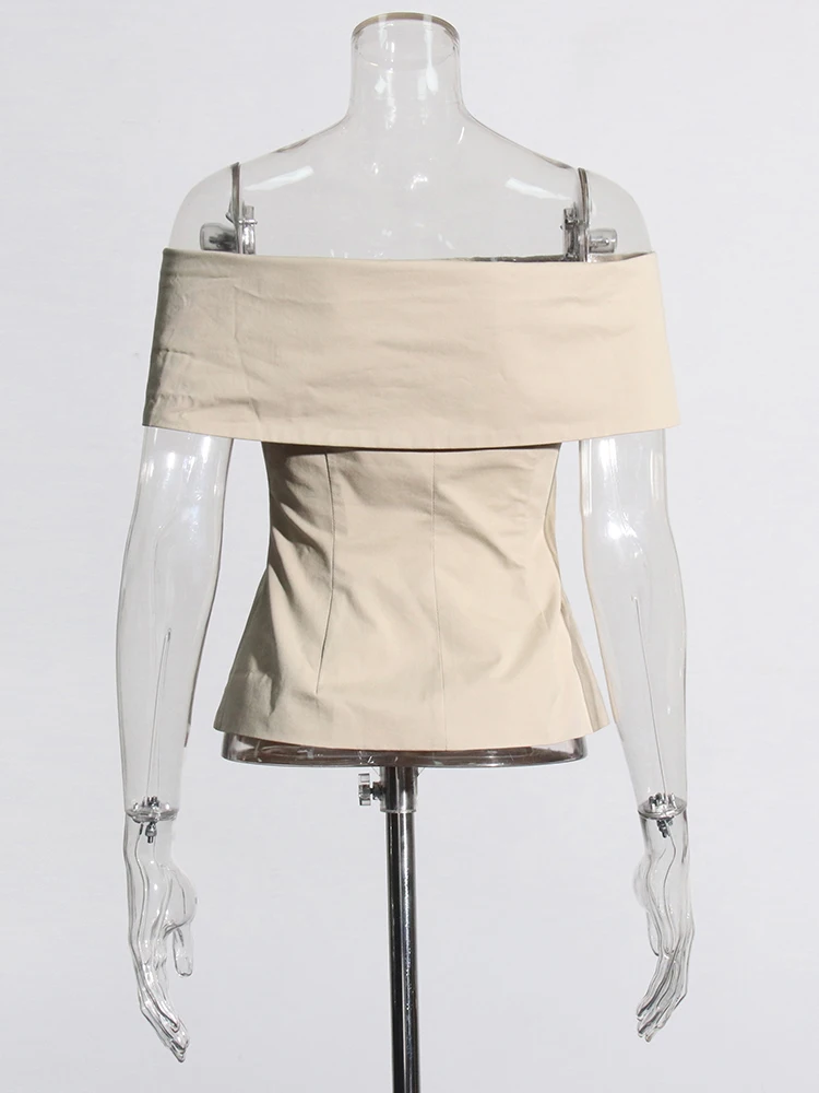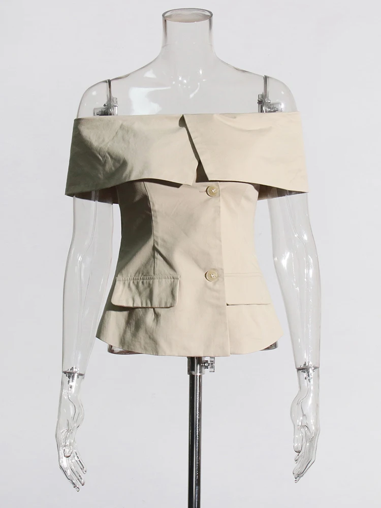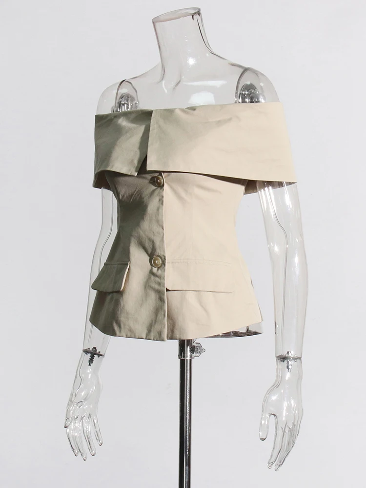 VGH Sexy Off Shoulder Blazers For Women Slash Neck Sleeveless Patchwork Double Breasted Soild Slimming Blazer Female Fashion New