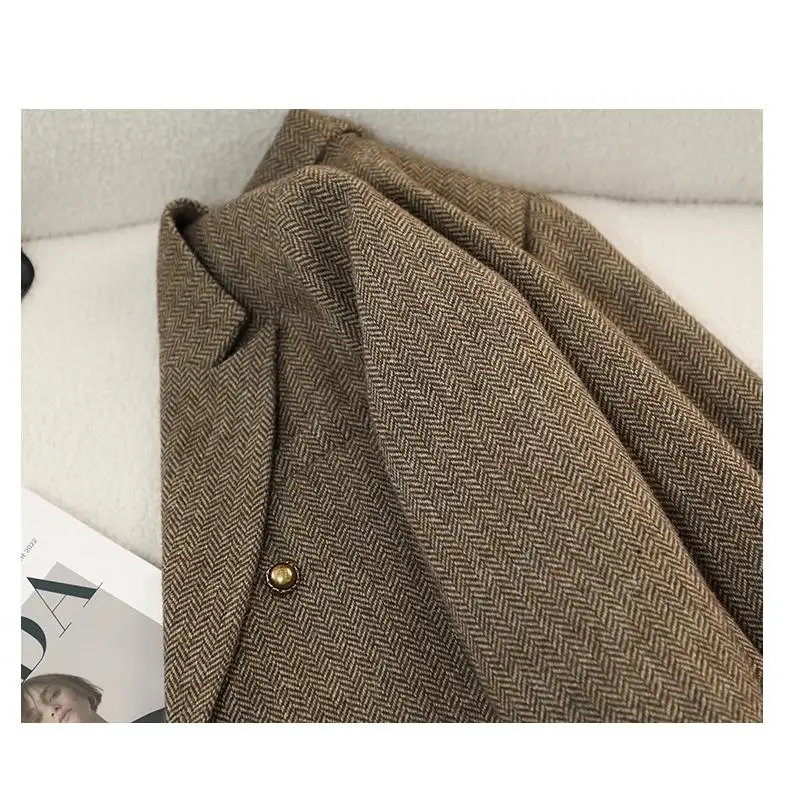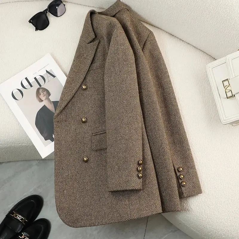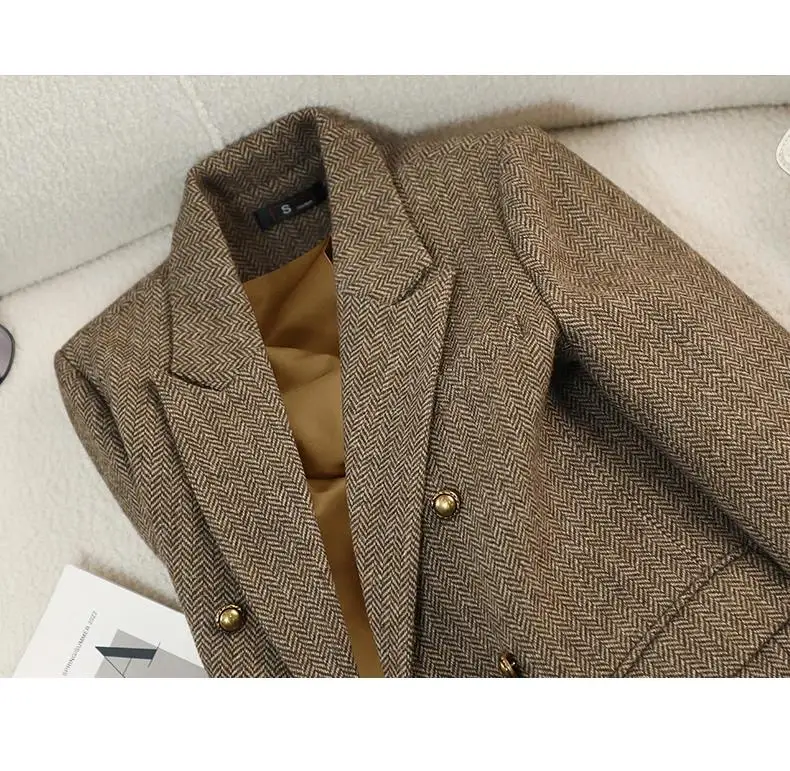 Women's Autumn Winter Long Sleeve Blazer Coats Vintage Thick Woolen Jackets Notched Elegant Outerwears Female Clothes