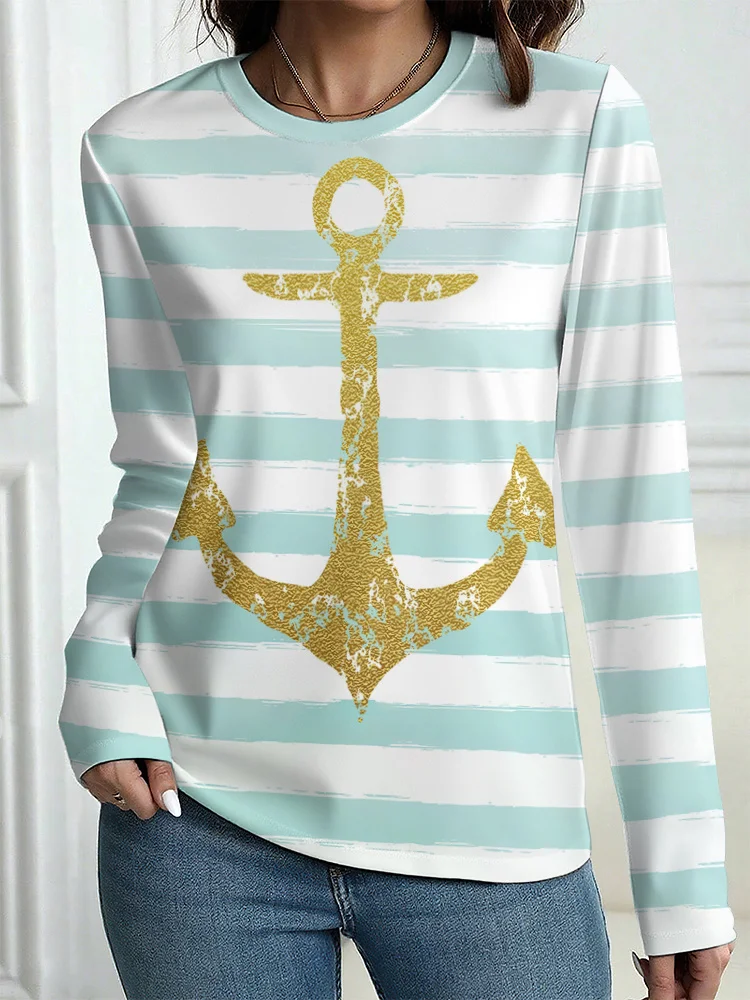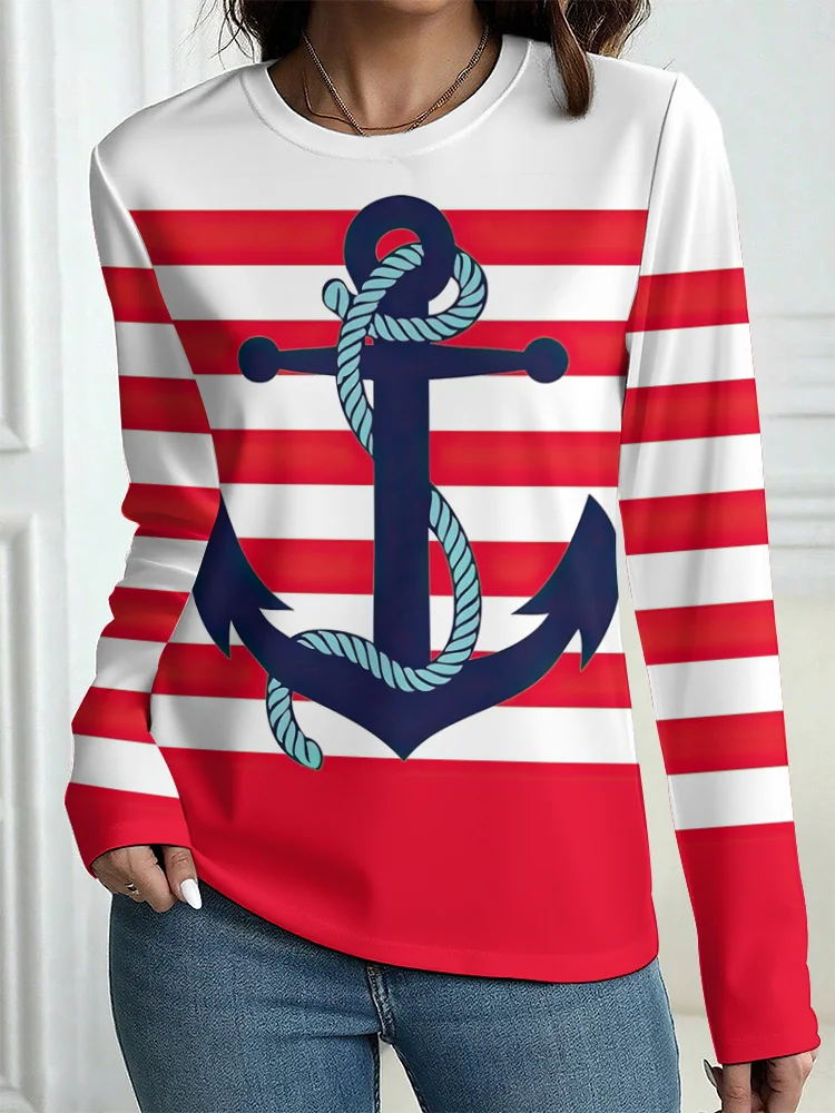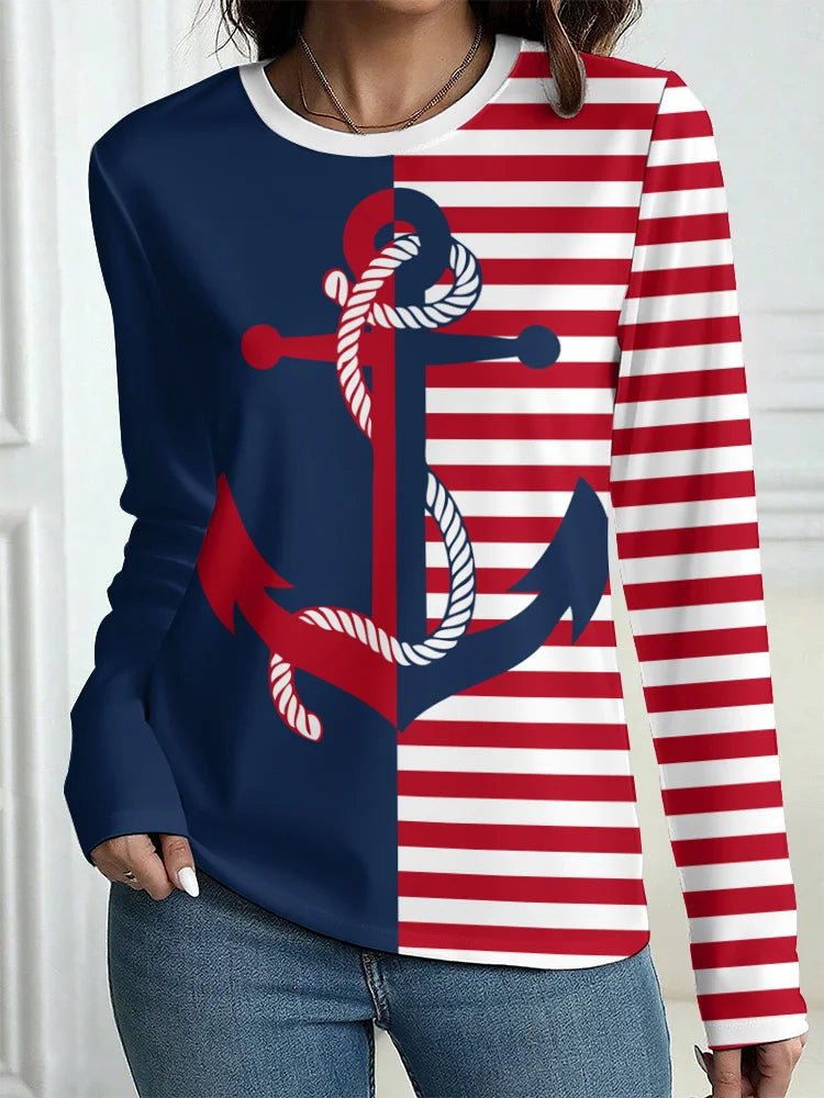 Women's T-Shirt Outdoor Casual Long Sleeve Pattern Print Street Crew Neck Fall Female Oversized Clothing Fashion T Shirts