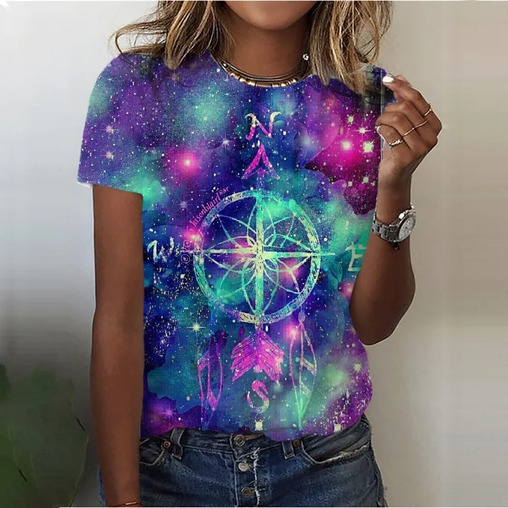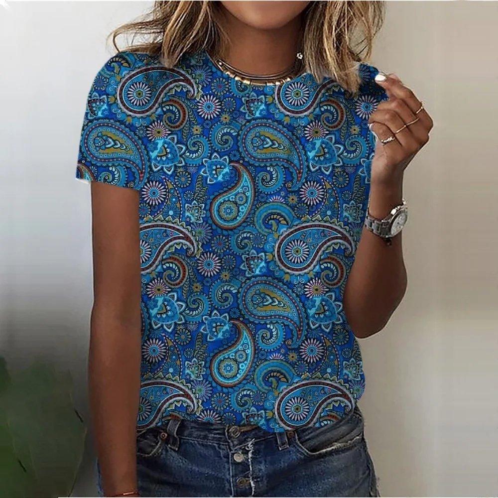 Women's T-Shirt Summer O-Neck Casual Bohemian Print Ladies Harajuku Short Sleeve Tops Fashion Lion 3D Print Y2k Woman Clothing