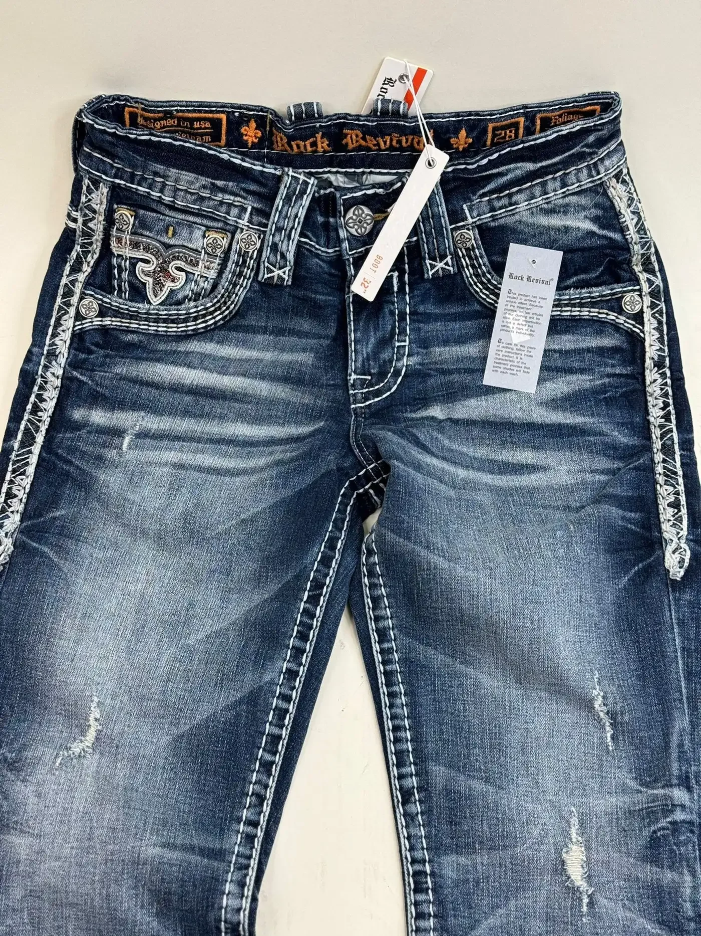 Y2K New Revival Mens Jeans Foliage Bootcut Women Gothic Blue Denim Embroidery Pocket Hip Hop Harajuku Wide Pants Street Wear