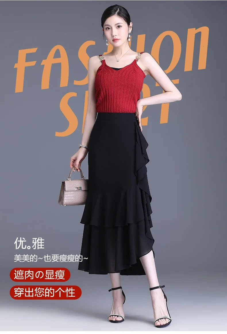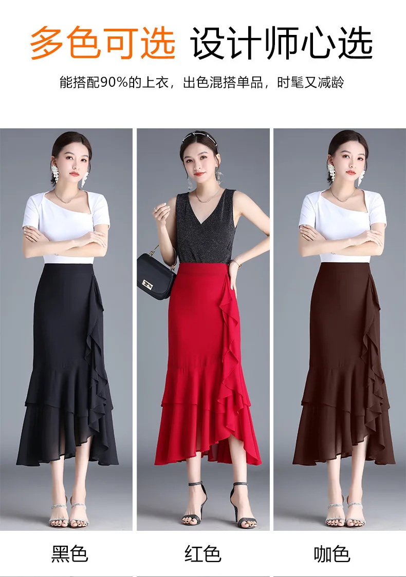 ZUZK Fashion Irregular Fishtail Chiffon Skirts Elegant High Waist Summer Luxury Party Skirt Female Ruffles Long Skirts